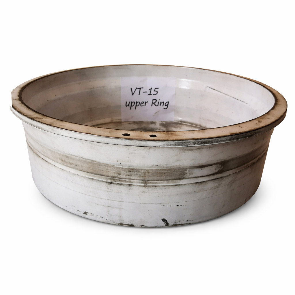 The upper ring component for VTA-5, VTA-10, and VTA-15 machines, designed to work in tandem with the bottom ring to create a sealed, efficient milling chamber. Precision-manufactured for exact clearance tolerances.